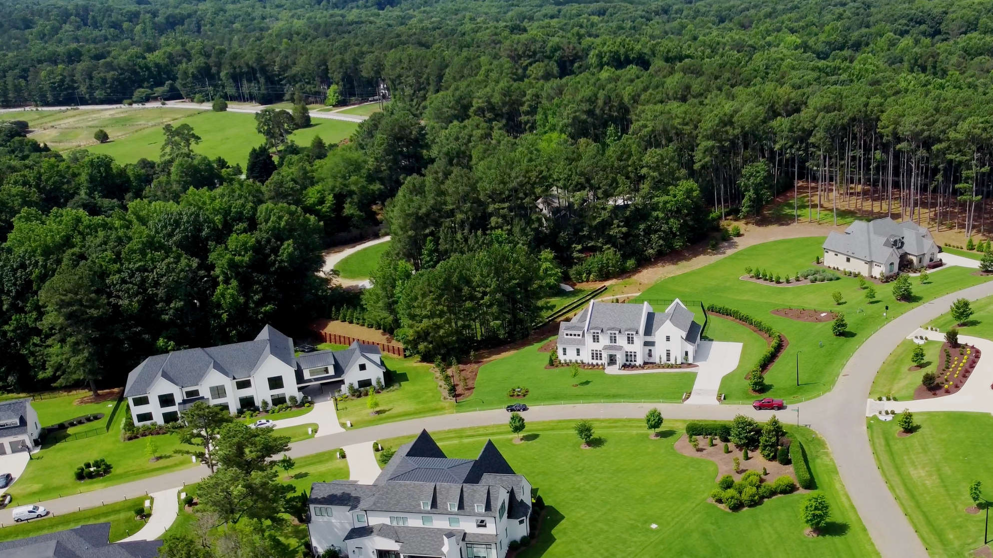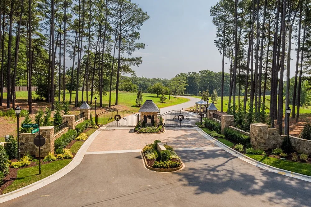 A scenic estate neighborhood known for rolling terrain, spacious homesites, and peaceful surroundings in North Raleigh.